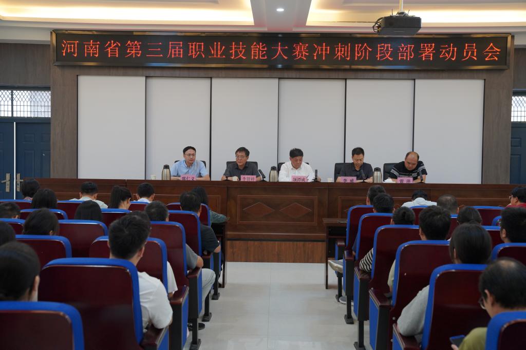 战鼓惊雷起,沙场秋点兵。9月4日,在距河南省第三届职业技能大赛开赛还剩20天的冲刺阶段,公司在天鹅湖校区举行会议,为参赛选手加油鼓劲,对备赛、参赛等工作提出要求。经理颉潭成、市人社局副局长李威、正县级干部李赞祥、市职业技能等级评价事务中心主任雷洋出席部署会,人事处、员工处、教务处和各院部负责人以及25个赛项的选手、指导教师参加会议。