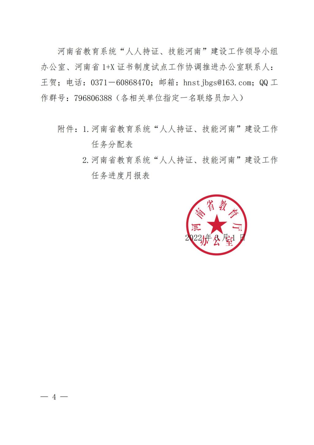 教办职成〔2022〕50号-河南省教育厅办公室 关于下达2022年教育系统落实“人人持证、技能河南”建设工作任务的通知