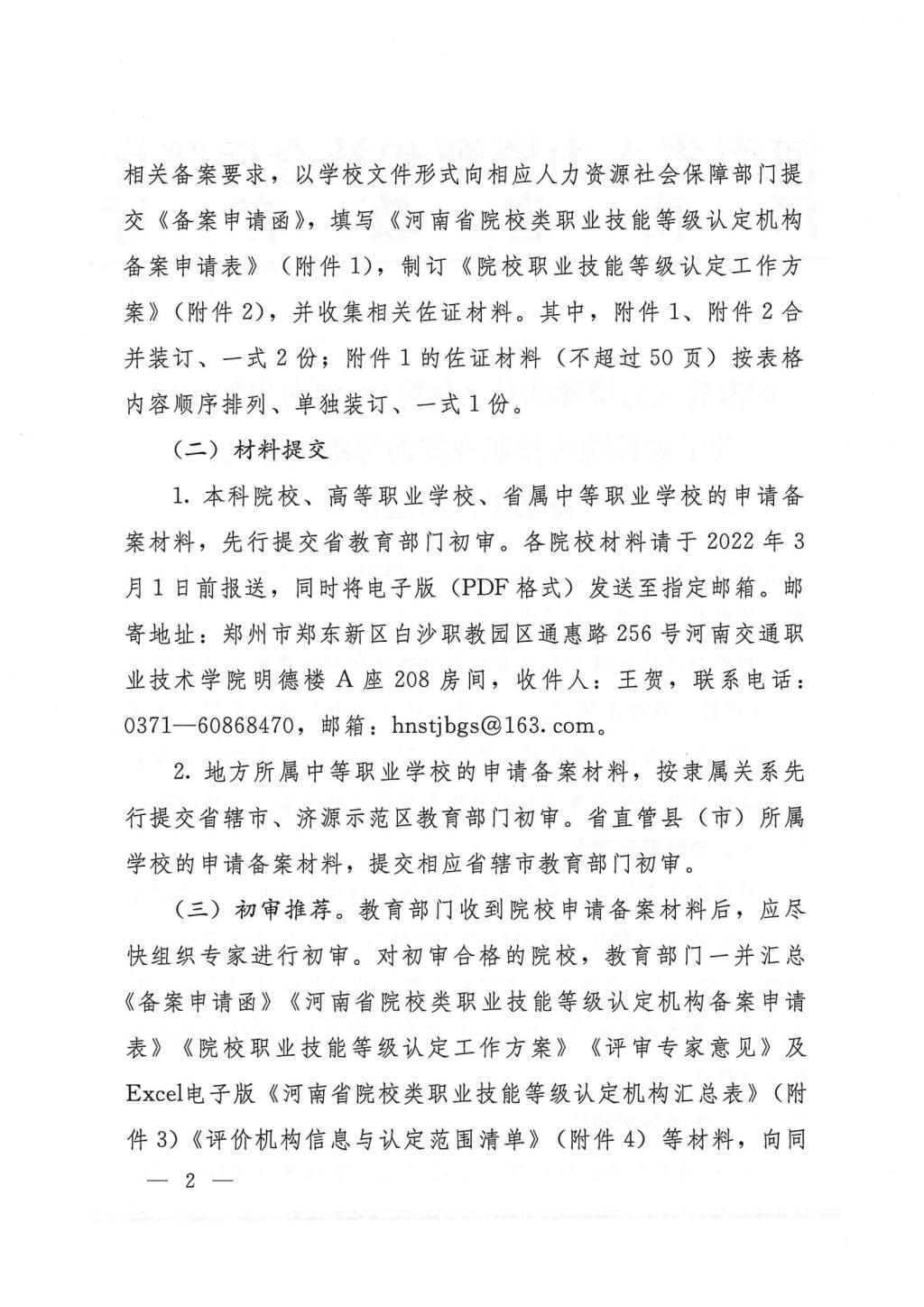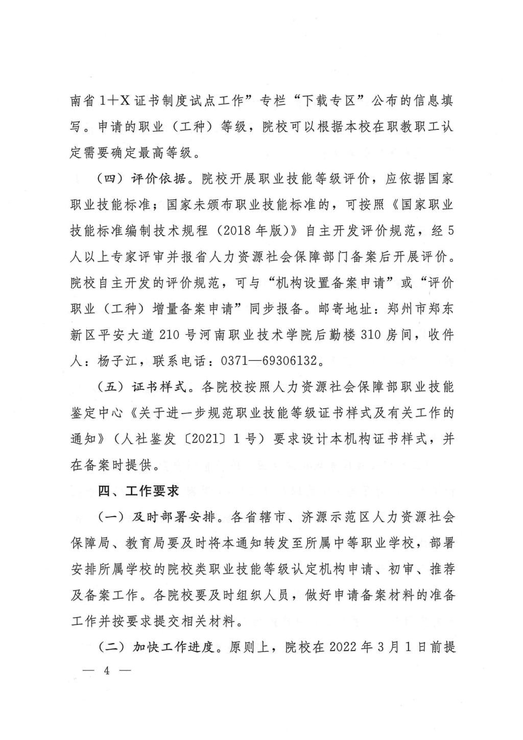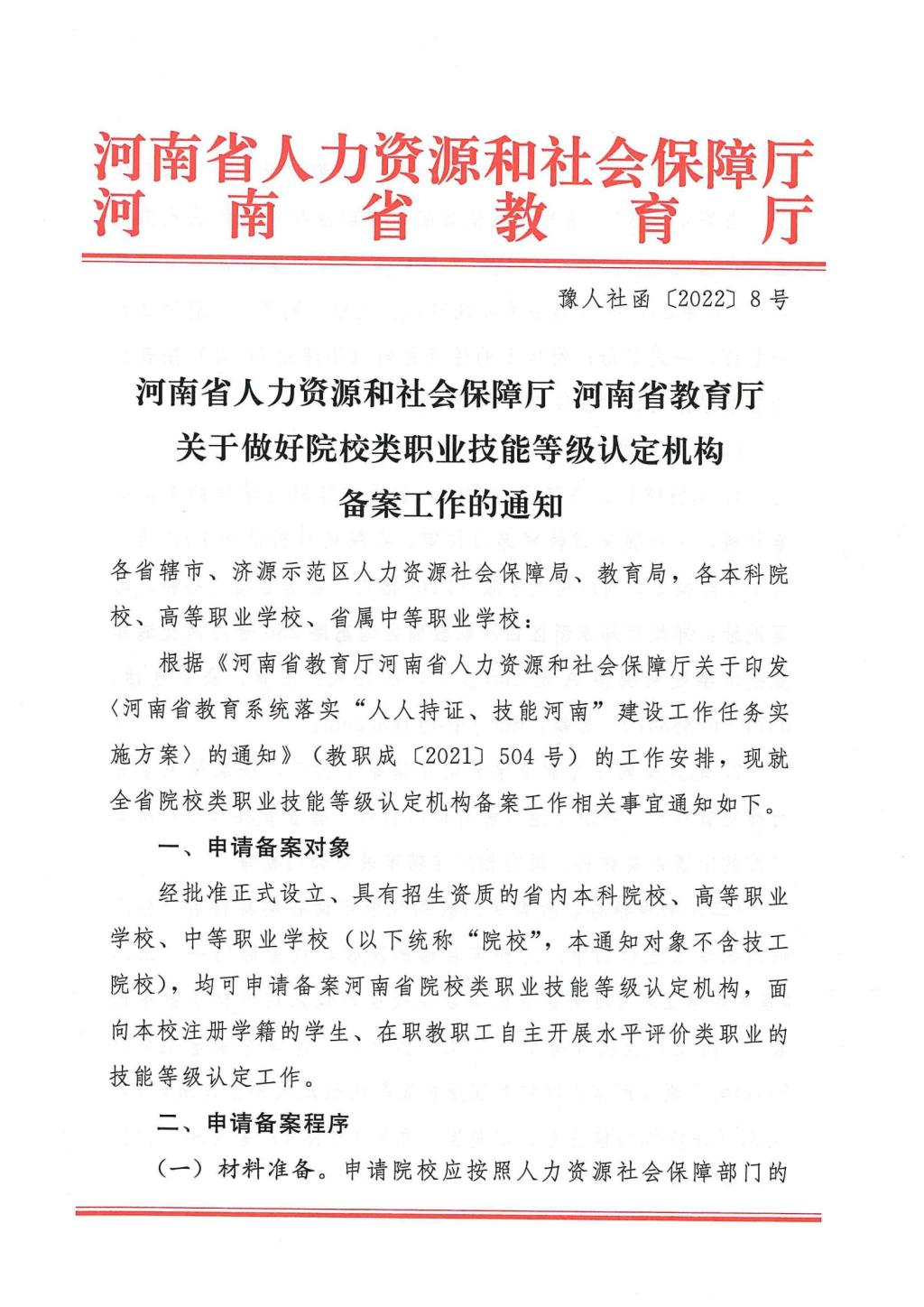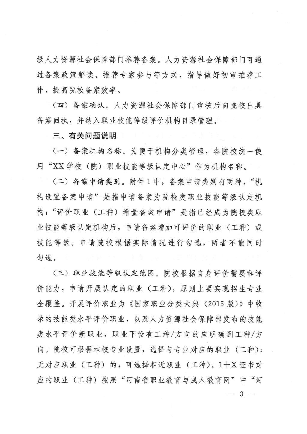 河南省人社厅教育厅关于做好院校类职业技能等级认定机构备案的通知